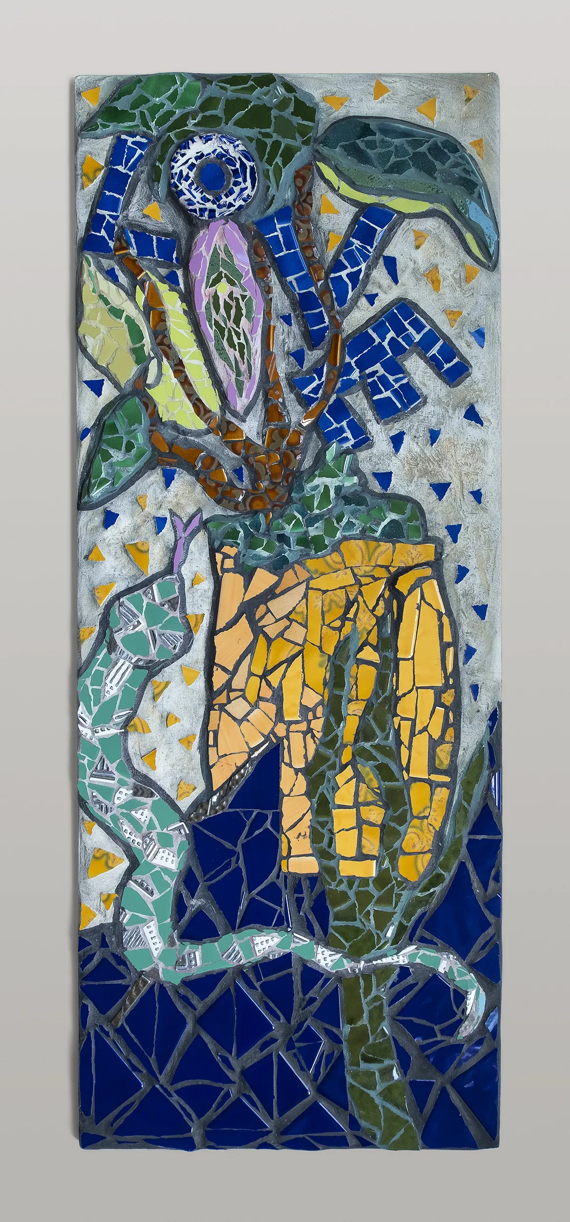 While my earlier works focused on the battle to break free, this mosaic celebrates the vibrant reality of living in that freedom. Reimagining the story of Adam and Eve through the electric colours of Marrakech’s Jardin Majorelle, this piece is a reclamation of my femininity and a move beyond the "male gaze" I once felt forced to satisfy.