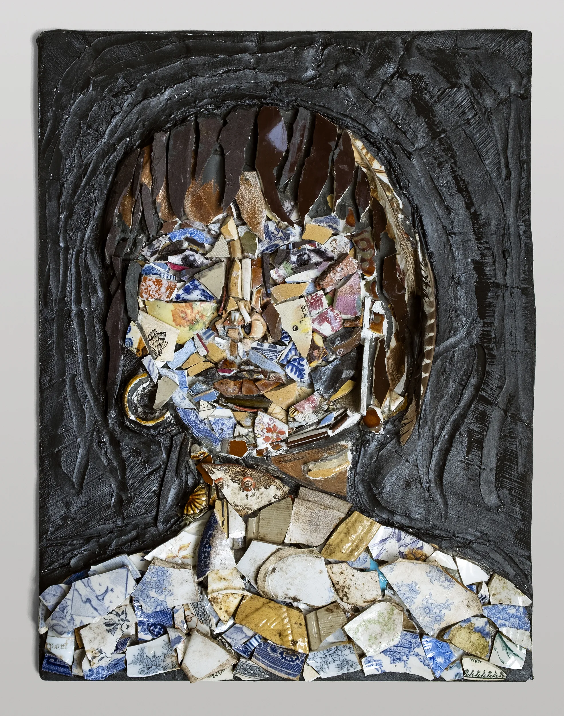 If the first work was about the "breaking," this self-portrait is about the "unearthing." It is a physical archive of a personal awakening, crafted from Victorian pottery fragments I excavated from the South Common in Lincoln—the very land that served as my childhood playground.